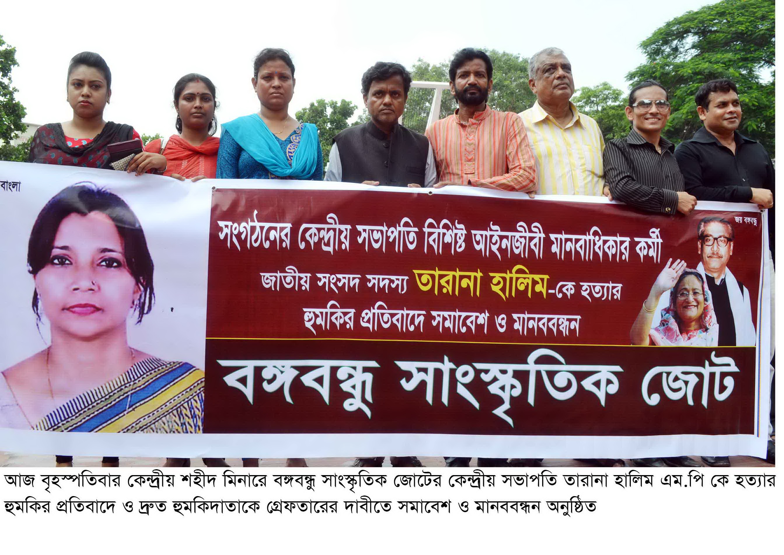 তারানা হালিম এম.পি কে হত্যার হুমকি প্রদান করার প্রতিবাদে কেন্দ্রীয় শহীদ মিনারে বঙ্গবন্ধু সাংস্কৃতিক জোটের সমাবেশ ও মানববন্ধন অনুষ্ঠিত