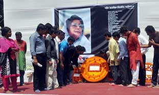 শহীদ জননী জাহানারা ইমামের স্মরণে তৈরি অস্থায়ী বেদীতে ফুল দেয়ার মধ্য দিয়ে গভীর শ্রদ্ধা নিবেদন করেছে সর্বস্তরের মানুষ