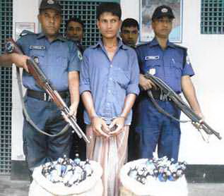 ছাদেকুল ইসলাম রুবেল, গাইবান্ধা প্রতিনিধি,এসবিডি নিউজ24 ডট কমঃ রংপুরের পীরগঞ্জ উপজেলার রংপুর ঢাকা মহাসড়কের আংরার ব্রীজের নিকট থেকে ৬২০ বোতল ফেন্সিডিল উদ্ধার করেছে পুলিশ। এ সময় পুলিশ ফেন্সিডিল পাচারের সাথে জড়িত থাকার অভিযোগে আরিফুল ইসলাম(৩০) নামের এক যুবককে আটক করে। সে উপজেলার টুকুরিয়া ইউনিয়নের কাশিপুর গ্রামের মৃত আনিছার রহমানের পুত্র। পুলিশ জানায়, গোপন সূত্রে সংবাদ পেয়ে ২৭ জুন রাতে ওই এলাকায় তল্লাশী চালিয়ে জঙ্গলে লুকিয়ে রাখা ২টি বস্তাভর্তি ৬২০ বোতল ফেন্সিডিল উদ্ধার ও ওই যুবককে আটক করা হয়েছে। এর আগে গত সোমবার পুলিশ ঢাকা মেট্রো-ট-১৪-৬৮৫২ নম্বরের ভূট্টাভর্তি একটি ট্রাক হতে ৩২৫ বোতল ফেন্সিডিল উদ্ধার করে এবং দুজনকে গ্রেপ্তার করে। উল্লেখ্য রংপুর-ঢাকা মহাসড়ক পথে রোজ হাজার হাজার বোতল ফেন্সিডিল পাচার হয়ে যাচ্ছে। হিলি সীমান্ত পথে রাতের আঁধারে পাচার করে নিয়ে আসা এসব ফেন্সিডিল করতোয়া নদীর টোংরারদহ,জয়ন্তপুর, কাঁচদহ ও দুধিয়াবাড়ি ঘাট পেরিয়ে পীরগঞ্জ উপজেলার খালাশপীর, চতরা ভেন্ডাবাড়ি পথে নিয়ে এসে রংপুর-ঢাকা মহাসড়কের পীরগঞ্জ উপজেলার পৃথক ৭টি স্থান থেকে কোন প্রকার রাখঢাক ছাড়াই দুরপাল্লার কোচযোগে রাজধানীসহ দক্ষিনের জেলাগুলোতে পাচার করা হয়।