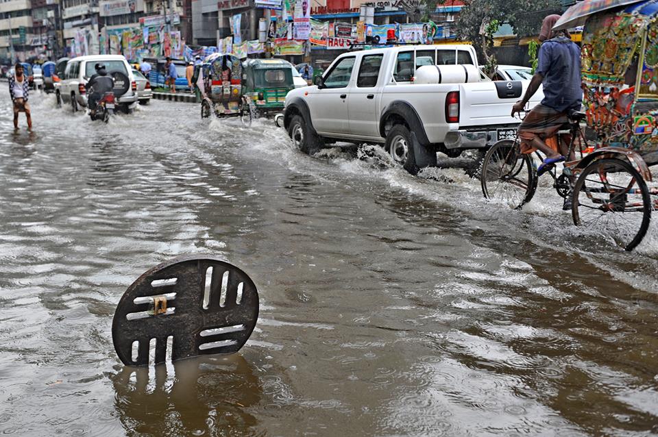 শহিদুল ইসলাম,এসবিডি নিউজ24 ডট কমঃ টানা দু’দিনের বৃষ্টিতে ২৯ জুন (শনিবার) রাজধানী ও আশপাশের বিভিন্ন নিচু এলাকায় পানি জমে গেছে। অলিগলিসহ প্রধান সড়কগুলোতেও হাঁটু পানি। জলাবদ্ধতায় চরম দুর্ভোগে পড়েছে রাজধানীবাসী। রাজধানীর অনেক জায়গায় স্বাভাবিক পানি নিষ্কাশনের ব্যবস্থা না থাকায় জলাবদ্ধতার সৃষ্টি হয়েছে। ফলে দুর্ভোগের স্বীকার হচ্ছে কর্মমুখী মানুষ। সাগরে নিম্নচাপের প্রভাবে বৃহস্পতিবার থেকেই থেমে থেমে রাজধানীতে ভারী বৃষ্টিপাত হচ্ছে। আর বৃষ্টির কারণে শান্তিনগর, কাকরাইল, নয়াপল্টন, মগবাজার, মালিবাগ-মৌচাক, বাড্ডা, রাজারবাগ, শেওড়াপাড়া এবং মিরপুরসহ রাজধানীর বিভিন্ন এলাকার সড়ক তলিয়ে গেছে। এছাড়া রাস্তার পাশের দোকানেও পানি ঢুকে পড়েছে। বিভিন্ন রাস্তায় জলাবদ্ধতার কারণে সকালে সাধারণ মানুষ দুর্ভোগে পড়েন। বিশেষ করে নিম্ন আয়ের মানুষের কাজে যেতে চরম বিড়ম্বনার শিকার হতে হচ্ছে।