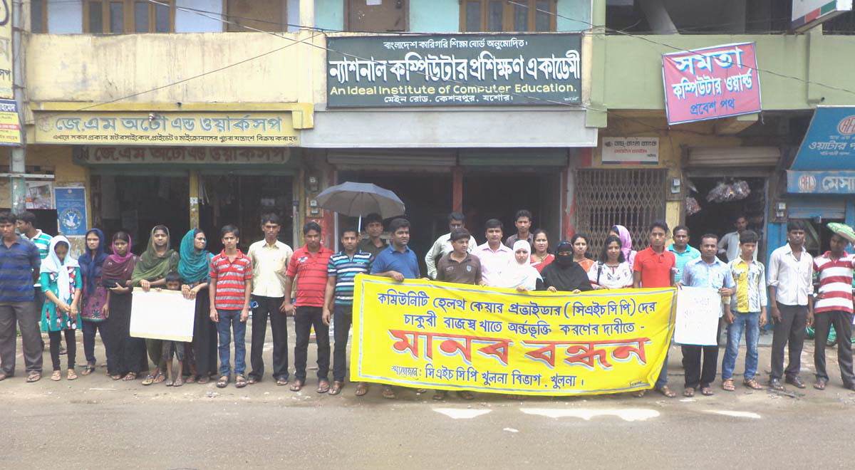 কেশবপুরে চাকরি জাতীয়করণের দাবিতে সিএইচসিপিদের মানববন্ধন