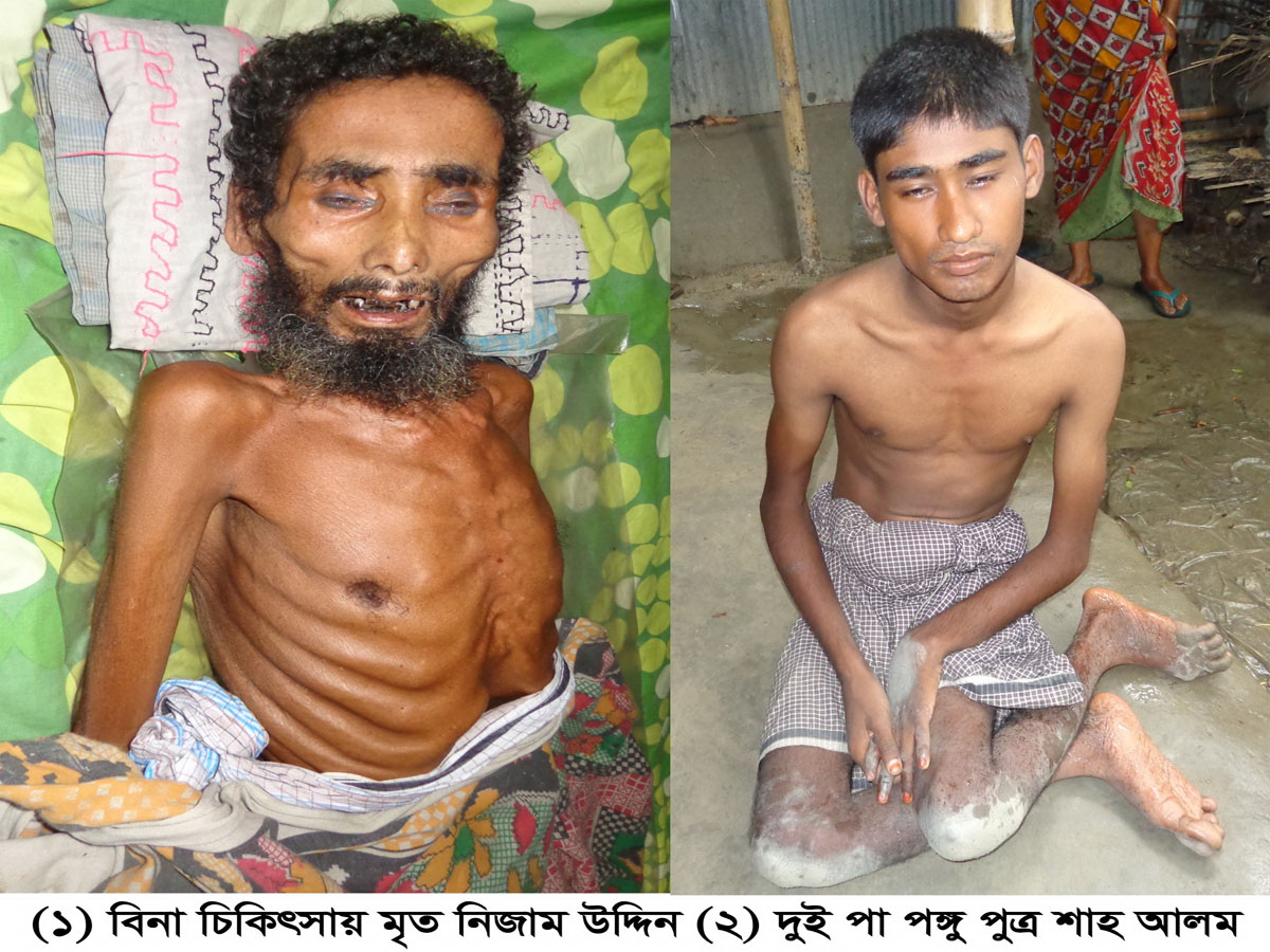 মো. ছাদেকুল ইসলাম রুবেল,গাইবান্ধা প্রতিনিধি,এসবিডি নিউজ24 ডট কমঃ গাইবান্ধার পলাশবাড়ি উপজেলার ৩নং ইউনিয়নের এক অজো পাড়া গাঁয়ের নাম পশ্চিম গোয়ালপাড়া। ওই গ্রামের এক হত দরিদ্র পরিবারের বাড়িতে কান্না আহাজারি চলছে। স্থানীয় লোকজনের ভীড় চোখে পড়ায় গত শনিবার দুপুর অনুমান ১২ ঘটিকায় সেখানে ছুটে যাই। কান্না-আহাজারির কারণ অনুসন্ধানে জানতে পারি প্রায় ৬০ বছর বয়সী নিজাম উদ্দিন মৃত্যুর সাথে পাঞ্জা লড়ছে। তার মুখে পানি সেবনের চেষ্টা করছেন অসহায় স্ত্রী আয়শা সিদ্দিকা। বুকের হাড় হাড্ডি গণনা করা যায়। পেটে কোন দানা পানি নেই। বুকÑপিঠ শুকিয়ে এক হয়ে গেছে। চোখে নিরব কান্নার দৃশ্য। কথা বলার শক্তি নেই। নেই শ্রবণ শক্তি। হাত পা চিকন হয়ে গেছে। এমন অবস্থা কেন? এ প্রশ্নের উত্তরে প্রতিবেশী লোকজন বিশেষ করে মালেকা বানু জানায়, নিজাম উদ্দিন একজন ভূমিহীন ক্ষেতমজুর। তার পিতার নাম মৃত দারাজ উদ্দিন। পৈত্রিক সম্পত্তি না থাকায় ক্ষেত খামারে দিন মজুরি করে তার সংসার চলতো। অনাহার অর্ধাহারে প্রায় এক বছর যাবৎ সে অপুষ্টির শিকার। ৬ মাস ধরে শয্যাশায়ী। পেটের পীড়া, বুকের ব্যথা, শ্বাসকষ্ট সহ নানা দুরারোগ্য ব্যধিতে আক্রান্ত। ২ মাস যাবৎ কিছুই খাচ্ছে না। স্থানীয় চিকিৎসার বাইরে উচ্চতর সুচিকিৎসা সেবা তার ভাগ্যে জোটেনি। স্ত্রী আয়শা সিদ্দিকা জানায়, ৪ কণ্যার বিয়ে হলেও এক কণ্যা স্বামী পরিত্যাক্তা। একমাত্র পুত্র শাহ আলম জন্ম থেকে দুই পা পঙ্গুত্ব প্রতিবন্ধী। ২০০৬ সাল থেকে এই প্রতিবন্ধীর সরকারি ভাতা ছাড়া আর কোন সুযোগ পাওয়া যায়নি। ভিজিডি, ভিজিএফ সহ অন্য কোন সাহায্য নাগালের বাইরে রয়েছে। নগদ অর্থ বিনিময়ের অভাবে স্থানীয় জন প্রতিনিধিরা এই তালিকার বাইরে রেখেছে তাদের অসহায় পরিবারের নাম। এমন পরিস্থিতির শিকার পরিবার প্রধান নিজাম উদ্দিন সহ সবাই অনাহার, অর্ধাহারে জীবন মরণ সমস্যায় থাকলেও কেউ সাহায্যের হাত বাড়ায়নি। এধরণের আকুতি শোনার পর পালাশবাড়ি বন্দরে ফেরত এসে রাত অনুমান ৮টায় জানতে পারি দুই মাস ব্যাপী অভূক্ত নিজাম উদ্দিন মারা গেছে। গত বৃহস্পতিবার তার দাফন স্থানীয় উদ্দ্যোগে সম্পন্ন হয়েছে। এ খবর পেয়ে বাংলাদেশ ক্ষেতমজুর সমিতি পলাশবাড়ি উপজেলা শাখার নেতৃবৃন্দ অভিযোগ করেন, বিনা চিকিৎসায় নিজাম উদ্দিনের অকাল মৃত্যুর কারন ঘটে। তার পঙ্গুু পুত্র শাহ আলম সহ পরিবারের অন্যান্য সদস্যরাও অনাহার অর্ধাহারে কষ্ট পাচ্ছে। পরিবারের আয় উপার্জনের কেউ নেই। সুত্রের মতে, ক্ষেত মজুর পরিবারের বর্তমান নাজুক পরিস্থিতি বিবেচনা করে সরকারিÑবেসরকারি প্রতিষ্ঠান সহ সমাজের বিত্তবান ব্যাক্তিদের আর্থিক সহায়তার হাত বাড়ানো প্রয়োজন। এতে অনাহার অর্ধাহারে থাকা এই অসহায় পরিবার 