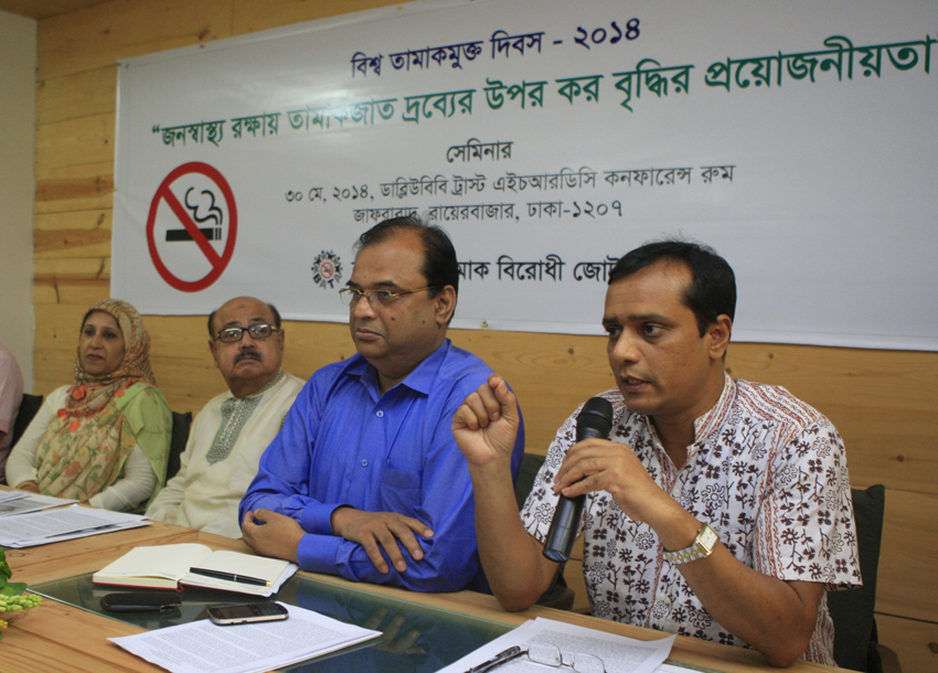 ৩০ মে (শুক্রবার) সকাল সাড়ে ১০টায় বাংলাদেশ তামাক বিরোধী জোট আয়োজিত সেমিনারে দেশের বিশিষ্ট জনেরা উপরোক্ত অভিমত ব্যক্ত করেন। রায়েরবাজারস্থ ওয়ার্ক ফর এ বেটার বাংলাদেশ (ডাব্লিউবিবি) ট্রাস্ট এর সম্মেলন কে অনুষ্ঠিত সভায় সভাপতিত্ব করেন জাতীয় যক্ষা নিরোধ সমিতি (নাটাব) এর সিনিয়র সভাপতি ও আন্তর্জাতিক সংগঠন দি ইউনিয়ন এর দক্ষিণ-এশিয়া অঞ্চলের সভাপতি জনাব মোজাফফর হোসেন পল্টু। এতে প্রধান আলোচক হিসাবে বক্তব্য রাখেন বিশ্ব স্বাস্থ্য সংস্থার ন্যাশনাল প্রফেশনাল অফিসার ড. এম মোস্তফা জামান। আলোচনা করেন ইউনাইটেড ফোরাম এগেইনেস্ট টোব্যাকো’র সাংগঠনিক সম্পাদক ও ন্যাশনাল হার্ট ফাউন্ডেশন এন্ড হসপিটাল এর অধ্যাপক ডা. সোহেল রেজা চৌধুরী, দি ইউনিয়নের জনস্বাস্থ্য বিষয়ক পরামর্শক ইসরাত চৌধুরী, জাতীয় তামাক নিয়ন্ত্রণ সেলের সমন্বয়কারী আমিনুল আহসান, র্যাব-৪ এর ‘ল অফিসার ও ম্যাজিস্ট্রেট’ মোহাম্মদ আল-আমিন। স্বাগত বক্তব্য রাখেন প্রত্যাশা মাদকবিরোধী সংগঠনের সেক্রেটারি জেনারেল ও বাংলাদেশ তামাক বিরোধী জোট এর ভারপ্রাপ্ত সমন্বয়কারী হেলাল আহমেদ। বাংলাদেশ তামাক বিরোধী জোট নির্বাহী সদস্য বিধান চন্দ্র পাল এর সঞ্চালনায় সেমিনারে প্রবন্ধ উপস্থাপন করেন গ্লোবাল ক্যান্সার এ্যাম্বাসেডর ফর বাংলাদেশ ও বাংলাদেশ তামাক বিরোধী জোট এর নিয়মিত প্রকাশনা সমস্বর এর নির্বাহী সম্পাদক আমিনুল ইসলাম সুজন। ড. মোস্তফা জামান বলেন, বিশ্ব স্বাস্থ্য সংস্থার আন্তর্জাতিক তামাক নিয়ন্ত্রণ চুক্তি ফ্রেমওয়ার্ক কনভেনশন অন টোব্যাকো কন্ট্রোল (এফসিটিসি) স্বার ও অনুস্বার (র্যাটিফাই) করেছে বাংলাদেশ সরকার যথাক্রমে ২০০৩ ও ২০০৪ সালে। তাই এ চুক্তির শর্তাবলী মানতে বাংলাদেশের বাধ্যবাধকতা রয়েছে। এফসিটিসির আর্টিকেল ৬-এ করবৃদ্ধি করার কথা বলা হয়েছে। অধ্যাপক সোহেল রেজা চৌধুরী বলেন, তামাক হচ্ছে মানবদেহের জন্য সবচেয়ে তিকর একটি নেশাজাত দ্রব্য। এর ফলে শরীরের পায়ের আঙুল থেকে মাথার চুল, সমস্ত অঙ্গ-প্রত্যঙ্গ তিগ্রস্ত হয়। ক্যান্সার, হৃদরোগ, উচ্চরক্তচাপ, ডায়বেটিস, এজমা ইত্যাদি কঠিন রোগের কারণে মানুষ ধীরে ধীরে মৃত্যুর কোলে ঢলে পড়ে। মানুষের মৃত্যু কমাতে তামাকজাত দ্রব্যের উপর কর বাড়াতে হবে। ইশরাত চৌধুরী বলেন, বাংলাদেশে সবচাইতে কম দামে তামাক বিক্রি হয়। এজন্য তরুণদের মধ্যে তামাক ব্যবহারের হার বাড়ছে। তরুণদের তামাক থেকে নিরুৎসাহিত করতে তামাকের উপর উচ্চহারে কর আরো করতে হবে। আমিন উল আহসান বলেন, সরকার সংশোধিত তামাক নিয়ন্ত্রণ আইনের আলোকে শীঘ্রই তামাক নিয়ন্ত্রণ বিধিমালা পাস করবে। বিধিমালা পাস হলে তামাক নিয়ন্ত্রণ আইন বাস্তবায়ন আরও কার্যকর হবে। মোহাম্মদ আল আমীন বলেন, তামাক কোম্পানিগুলোকে কঠোর