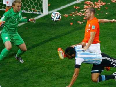 প্রথমার্ধের পর গোলের দেখা মেলেনি দ্বিতীয়ার্ধেও। অতিরিক্ত সময়ও থেকেছে গোলশূণ্য। অতঃপর পেনাল্টি শুটআউটে হল্যান্ডকে ৪-২ ব্যবধানে হারিয়ে ফাইনাল নিশ্চিত করেছে আর্জেন্টিনা। ৯০ মিনিটের পর যোগ করা সময়ে জয়সূচক গোলটি করার দারুণ এক সুযোগ পেয়েছিলেন আরিয়েন রোবেন। কিন্তু তাঁর সেই গোল প্রচেষ্টা দারুণভাবে রুখে দিয়েছেন আর্জেন্টিনার ডিফেন্ডার হাভিয়ের মাচেরানো। এর আগে ৭৬ মিনিটের মাথায় হল্যান্ডের জালে একবার বল জড়িয়েও দিয়েছিলেন গঞ্জালো হিগুয়েইন। আর্জেন্টিনার সমর্থকেরা মেতে উঠেছিলেন উল্লাসে। কিন্তু পরমুহূর্তেই রেফারির অফসাইডের পতাকার দিকে তাকিয়ে হতাশ হতে হয়েছে তাদের। রেফারির সিদ্ধান্ত সঠিক ছিল কিনা, সেটা নিয়ে হয়তো অনেক বিতর্কই চলবে ফুটবল বিশ্বে। কিন্তু আপাতত সেটা দূরে রেখে অতিরিক্ত সময়ের দিকেই তাকিয়ে থাকতে হবে ফুটবলপ্রেমীদের। প্রথমার্ধের মতো দ্বিতীয়ার্ধেও সমানে সমানেই লড়াই চালিয়েছে দুই সেমিফাইনালিস্ট। নির্ধারিত ৯০ মিনিটের খেলায় ৫৪ শতাংশ সময় বলের দখল ছিল হল্যান্ডের কাছে। তবে রক্ষণভাগে এসে খুব বেশি শট নিতে পারেনি ডাচরা। ছয়টি শট নিলেও কোনোটিই ছিল না আর্জেন্টিনার গোলপোস্ট লক্ষ্য করে। প্রথমার্ধে ওয়েসলি স্নেইডারের একটি শটটা চলে গেছে গোলপোস্টের বেশ খানিকটা বাইরে দিয়ে। আরিয়েন রোবেনকে কয়েকবার দেখা গেছে স্বভাবসুলভ দ্রুতগতিতে আর্জেন্টিনার রক্ষণভাগে ঢুকে পড়তে। কিন্তু সেগুলো দিয়ে গোলের সুযোগ তৈরি করতে পারেননি এই ডাচ উইঙ্গার। ১৫ মিনিটে অধিনায়ক লিওনেল মেসির একটি ফ্রি-কিক দারুণভাবে রুখে দিয়েছিলেন ডাচ গোলরক্ষক ইয়াসপার সিলেসেন। ২৫ মিনিটে এজেকিয়েল গারাইয়ের হেড চলে গেছে হল্যান্ডের গোলপোস্টের কিছুটা ওপর দিয়ে।