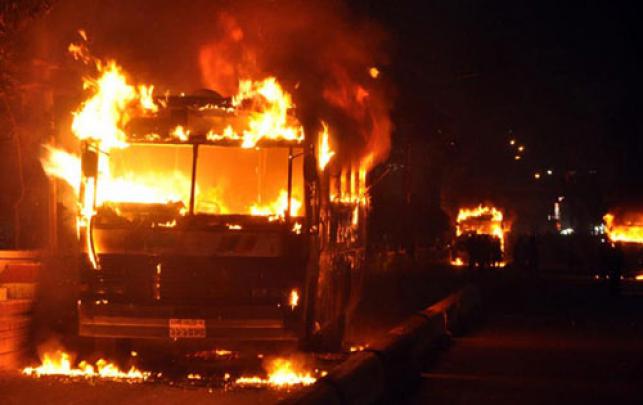 এর আগে, রাত ৭ টা ৫৮ মিনিটে মিরপুরে সনি সিনেমা হলের সামনে একটি যাত্রীবাহী বাসে আগুন দিয়েছে দুর্বৃত্তরা। তবে এতে কোন হতাহতের খবর পাওয়া যায়নি। সত্যতা নিশ্চিত করে ফায়ার সার্ভিস জানায়, প্রজাপতি পরিবহনের একটি বাসে (ঢাকা মেট্রো ব ১১-৬৯১৪) আগুন ধরিয়ে দেয়া হয়। খবর পেয়ে মিরপুর ফায়ার স্টেশনের দুইটি ইউনিট ঘটনাস্থলে গিয়ে আগুন নিভিয়ে ফেলে। রাত ৭ টার দিকে মোহাম্মদপুরে জয় বাংলা স্লোগান দিয়ে একটি যাত্রীবাহী বাসে আগুন দিয়েছে দুর্বৃত্তর। এ সময় বেশ কয়েকটি ককটেল বিস্ফোরণ ঘটে। প্রত্যদর্শীরা জানান, ‘জয় বাংলা’ স্লোগান দিয়ে মোহাম্মদপুর-মতিঝিল রুটের মৈত্রী পরিবহনের একটি বাসে (ঢাকা মেট্রো ব-১১-১৭৪৩) ইট-পাটকেল ছুড়তে থাকে দুর্বৃত্তরা। এরপর পেট্রোল ঢেলে বাসটিতে আগুন ধরিয়ে তারা চলে যায়। পরবর্তীতে স্থানীয় লোকজন আগুন নিভিয়ে ফেলে। তবে বিষয়টি অস্বিকার করে মোহাম্মদপুর থানার ওসি আজিজুল হক বলেন, “আমার এলাকায় কোন আগুনের খবর পাওয়া যায়নি।” সন্ধ্যা ৬টা ৫৩ মিনিটে যাত্রাবাড়ীতে বিএনপির নেতৃত্বধীন ২০ দলীয় জোটের নেতাকর্মীদের সাথে আ’লীগের মধ্যে ধাওয়া পাল্টা ধাওয়া ঘটে। এ সময় একটি বাস ও একটি ট্রাকে আগুন দেয়া হয়। এছাড়াও ৬টি গাড়িতে ভাঙচুর করার খবর পাওয়া গেছে।
