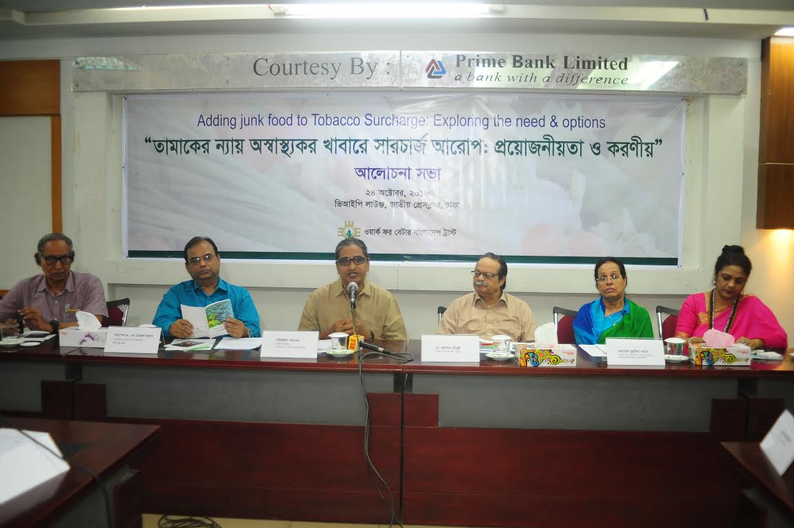আজ সকাল সাড়ে ১১টায় জাতীয় প্রেসক্লাবের ভিআইপি কক্ষে অনুষ্ঠিত এক সভায় দেশের খ্যাতিমান জনস্বাস্থ্য বিশেষজ্ঞবৃন্দ উপরোক্ত আহবান জানান। ওয়ার্ক ফর এ বেটার বাংলাদেশ (ডাব্লিউবিবি) ট্রাস্ট এর ‘অস্বাস্থ্যকর খাবারের বিজ্ঞাপন এবং জনস্বাস্থ্যে বিরূপ প্রভাব’ বিষয়ক গবেষণা গন্থের প্রকাশনা উপলক্ষে অনুষ্ঠিত এ সভায় সভাপতিত্ব করেন ডাব্লিউবিবি ট্রাস্ট এর নির্বাহী পরিচালক সাইফুদ্দিন আহমেদ।