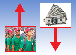 তিনি বলেন, ‘এ বছরের নভেম্বর পর্যন্ত ১২.৬৫ বিলিয়ন মার্কিন ডলার রেমিটেন্স এসেছে। গত বছর এসেছিল ১৫.৩১ বিলিয়ন মার্কিন ডলার। তাসমিন সিদ্দিকী বলেন, ‘রেমিটেন্স কমার কারণ দেশের মুদ্রার অবমূল্যায়ন। এটা বৈধ চ্যানেলে রেমিটেন্স পাঠানোকে নিরুৎসাহিত করেছে।’ তিনি জানান, ‘২০১৫ সালের তুলনায় এ বছর জনশক্তি রফতানি বেড়েছে ৩৫ শতাংশ। এ বছর ৭ লাখ ৫০ হাজার শ্রমিককে বিদেশে পাঠানো হয়েছে। ২০১৬ সালের ১ জানুয়ারি থেকে ৭ ডিসেম্বর পর্যন্ত ৭ লাখ ৪৯ হাজার ২৪৯ জন বাংলাদেশি নাগরিক চাকরি নিয়ে বিদেশে গেছে। এদের অধিকাংশই গেছে উপসাগরীয় দেশগুলোতে। অনেকে গেছে মধ্যপ্রাচ্যের দেশ ও দক্ষিণ-পূর্ব এশিয়ার দেশগুলোতে।’