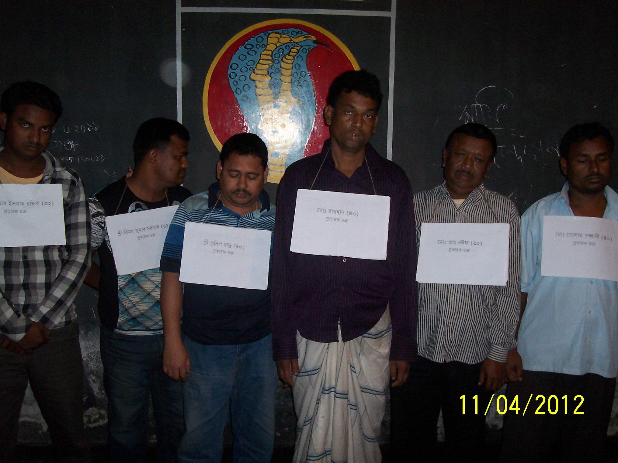 চপল সাহা, বগুড়া থেকে, এসবিডি নিউজ24 ডট কমঃ ১১ এপ্রিল (বুধবার) সকালে র্যাব-১২ স্পেশাল কোম্পানী, বগুড়ার কোম্পানী কমান্ডার সিনিয়র এএসপি সুমিত চৌধুরীর নেতৃত্বে একটি দল অভিযোগের ভিত্তিতে বগুড়া জেলার সদর থানাধীন জলেশ্বরীতলা করতোয়া কুরিয়ার সার্ভিস অফিস, তিনমাথা রেলগেইট জালাল মার্কেটের অফিস, বগুড়া তিনমাথা ফেরদৌস আবাসিক বোডিং এর ৭ এবং ৮ নম্বর কক্ষ থেকে প্রতারক চক্রের ৬ সদস্যকে আটক করেছে। প্রতারকরা এক ব্যক্তিকে অপহরণের পর ১ লাখ টাকা করতোয়্ কুরিয়ারের মাধ্যমে পাঠানোর কথা বলে। বিষযটি র্যাব-১২ কে জানানো হলে করতোয়া কুরিয়ার সার্ভিস থেকে বিমান কুমার সরকারকে আটক করে। তার স্বীকরোক্তি মোতাবেক অপর আসামীদের বিভিন্ন স্থান থেকে আটক করা হয়। এসময় র্যাব সদস্যরা অপহৃত আব্দুর রউফ মন্ডলকে উদ্ধার করে।