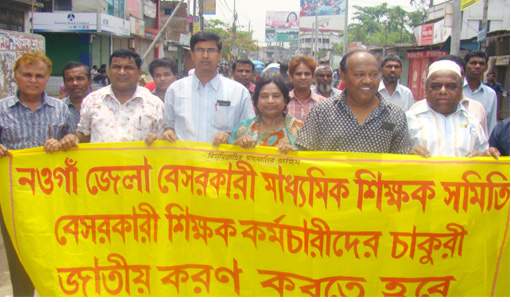 চাকুরী জাতীয় করনের দাবীতে নওগাঁয় বে-সরকারি শিক্ষক সমিতির মিছিল