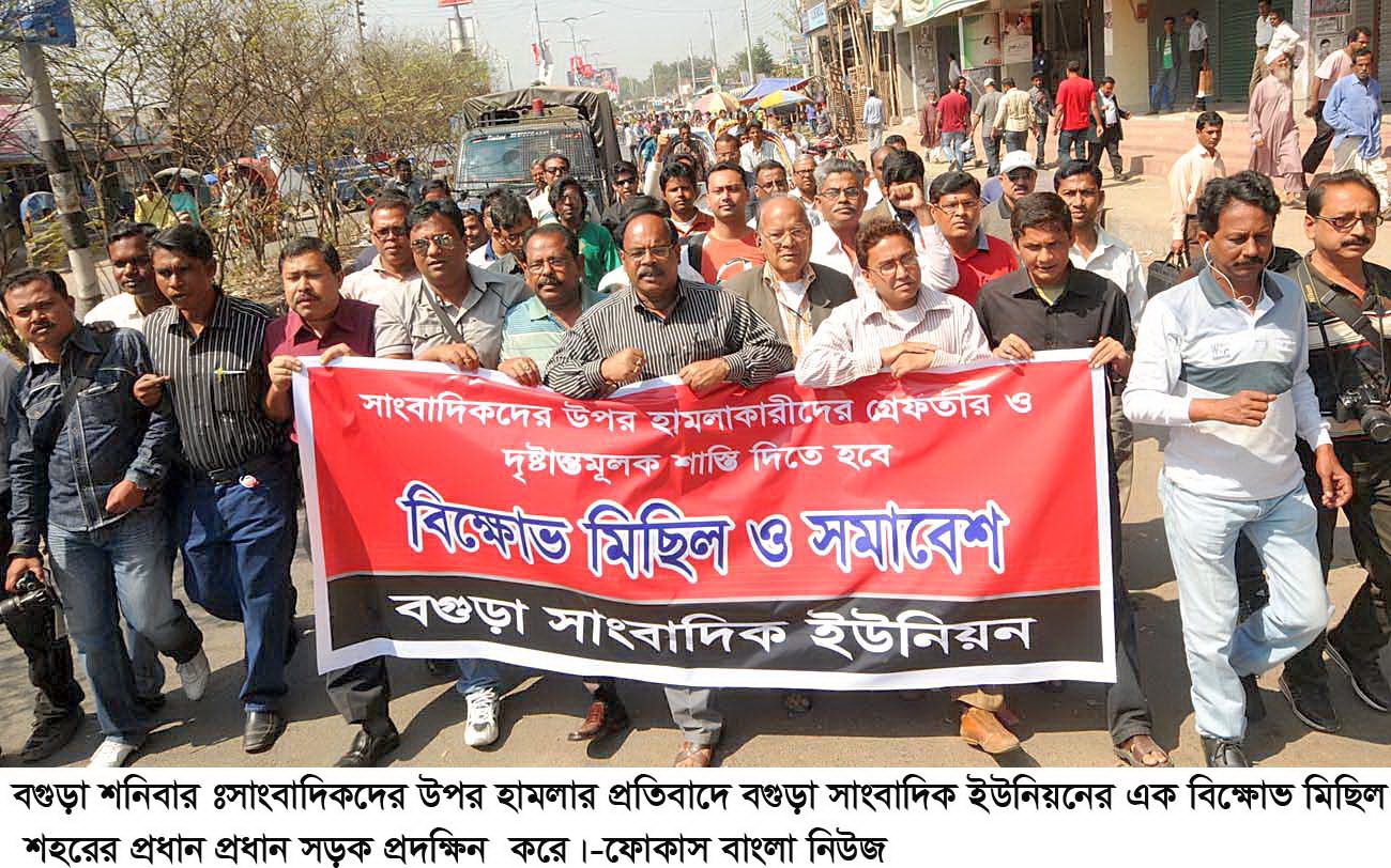 সারাদেশে সাংবাদিকদের উপর হামলার প্রতিবাদে বগুড়ায় বিক্ষোভ মিছিল ও সমাবেশ