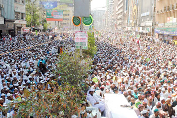 নিজস্ব প্রতিনিধি,এসবিডি নিউজ24 ডট কমঃ ইসলামী আন্দোলন বাংলাদেশ-এর মহাসমাবেশ থেকে সংবিধানে আল্লাহর ওপর পূর্ণআস্থা ও বিশ্বাস পুনঃস্থাপন, নাস্তিক-মুরতাদদের শাস্তি দিতে আইন পাস ও নির্দলীয় নিরপেক্ষ তত্ত্বাবধায়ক সরকারের অধীনে জাতীয় সংসদ নির্বাচন দেয়ার দাবিতে আল্টিমেটাম দেয়া হয়েছে। আগামী ৫ এপ্রিলের মধ্যে তাদের এ দাবি পূরণ না হলে ৬ এপ্রিল হেফাজতে ইসলামের লং মার্চের কর্মসূচির প্রতি সমর্থন জানিয়ে তাতে অংশ নেবে ইসলামী আন্দোলন বাংলাদেশ। এরপরও এ দাবি বাস্তবায়ন না হলে ২৫ এপ্রিল প্রধানমন্ত্রীর কার্যালয় ঘেরাও করা হবে। ২৯ মার্চ (শুক্রবার) বিকেলে রাজধানীর মতিঝিলের শাপলা চত্বরে ইসলামী আন্দোলন বাংলাদেশের মহাসমাবেশ থেকে এ কর্মসূচি ঘোষণা করা হয়। সমাবেশের সভাপতি ইসলামী আন্দোলন বাংলাদেশের আমির ও চরমোনাই পীর মাওলানা মুফতি সৈয়দ মুহাম্মদ রেজাউল করীম এ কর্মসূচি ঘোষণা করেন। তিনি ‘নাস্তিক ব্লগারদের শাস্তির দাবিতে আল্লামা শফীর নেতৃত্বাধীন হেফাজতে ইসলামের ডাকা লং মার্চের সঙ্গে একাত্মতা ঘোষণা করেন। কয়েক লাখ মুসুল্লি এ সমাবেশে অংশ নেন।