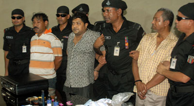 নিজস্ব প্রতিনিধি,এসবিডি নিউজ24 ডট কমঃ রানা প্লাজার মালিক সোহেল রানাকে যশোরের বেনাপোল সীমান্ত থেকে ২৮ এপ্রিল (রোববার) গ্রেফতারের পর ঢাকায় র্যাব হেড কোয়ার্টারে আনা হয়। এরপর বিকেল পৌনে ৬টার দিকে সংবাদ সম্মেলন শুরু করে র্যাব। সংবাদ সম্মেলনে র্যাবের মহাপরিচালক মোখলেছুর রহমান ভবন ধসের ঘটনায় রানাকেই দায়ী করেন। তিনি বলেন, ‘সীমান্ত অতিক্রম করার আগে সোহেল রানাকে ফেনসিডিলসহ গ্রেফতার করা হয়। তিনি বলেন, ‘সাভারে ভবন ধসের ঘটনায় সোহেল রানাই দায়ী। ঘটনার পর তিনি পালিয়ে বিভিন্ন স্থানে আত্মগোপন করেন। আমরা গোপন সূত্রে জানতে পারি, ভারতে পালিয়ে যাওয়ার জন্য সীমান্তে চলে গেছেন রানা। কিছুক্ষণের মধ্যেই তিনি সীমান্ত অতিক্রম করবেন। সীমান্ত অতিক্রম করার আগেই আমরা তাকে গ্রেফতার করি।’ র্যাবের মহাপরিচালক আরও বলেন, ‘নির্দেশ আসার পরপরই সব ব্যাটালিয়নকে নির্দেশ দেয়া হয়। এই চারদিনে রানা বিভিন্ন স্থানে ছিলেন। ঢাকার বাইরে দুই থেকে তিন জায়গায় ছিলেন তিনি।’ এক প্রশ্নের জবাবে তিনি বলেন, ‘রানাকে প্রশ্রয় দেয়া হয়নি। প্রশ্রয় দেয়া হলে তিনি এক জায়গায় থাকতেন। প্রশ্রয় পায়নি বলেই এ সময়ের মধ্যে তিনি তিন চারটি জেলা পরিবর্তন করেন।’ রানাকে ঢাকা জেলা পুলিশের হাতে সোর্পদ করা হবে এবং মাদকদ্রব্য নিয়ন্ত্রণ আইনে মামলা হবে বলেও জানান র্যাব প্রধান। এদিকে যশোর থেকে হেলিকপ্টারে করে ঢাকায় আনার কিছুক্ষণ পর র্যাব সদর দফতরে সাংবাদিকদের সামনে রানাকে হাজির করা হয়।