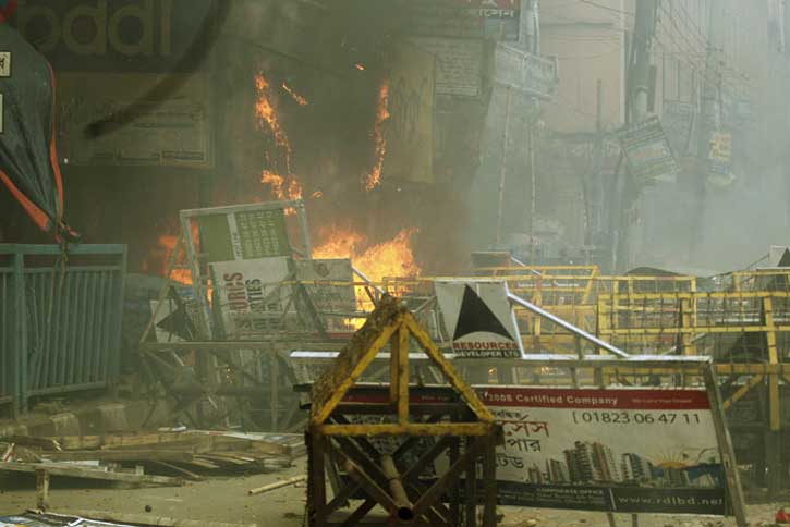 হেফাজতের তাণ্ডবঃ ট্রাফিক অফিসে আগুন,সংবাদিকসহ অর্ধশতাধিক গুরুতর আহত